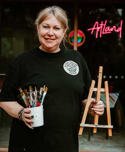 Combining acrylic and charcoal, Taylor builds texture and personality through expressive mark-making, splattered detail, and intuitive line work. The composition feels joyful yet symbolic — suggesting protection, connection, and the unseen forces that guide us.