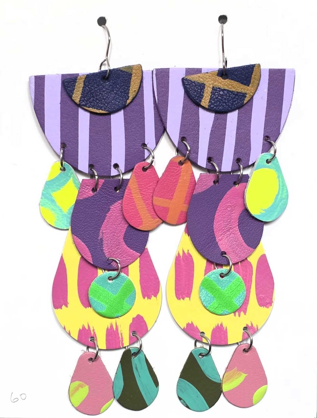 Cut into playful shapes and layered with vibrant colour, the earrings combine artistic expression with wearable design. Despite their striking size, the ultra-lightweight construction ensures comfortable all-day wear, while durable stainless steel hooks provide strength and longevity.
