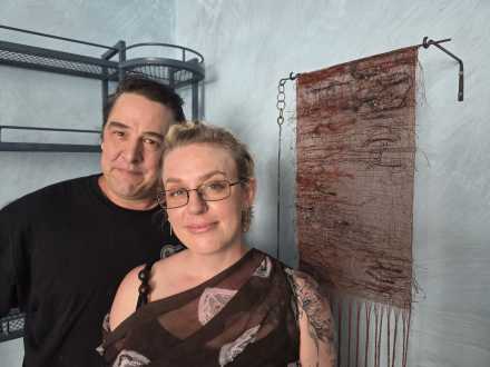 Installed on a minimal metal rod, the work balances softness and strength, fragility and resilience. It reads as a landscape in fibre: sediment, undercurrent, light glancing off water at dusk.