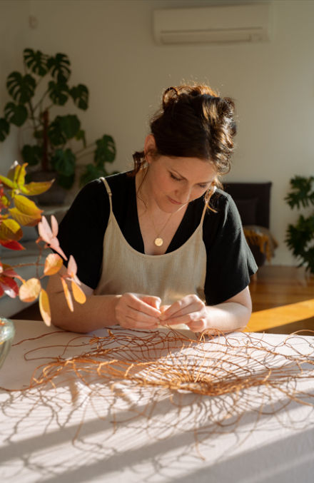 Balancing textile practice with contemporary sculpture, Elishia Jackson’s work speaks to process, patience and the beauty of natural materials. ‘Drift’ is both tactile and ethereal — a refined statement piece.