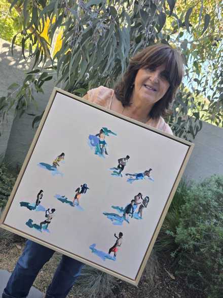 Debinski’s background in fashion and design is evident in her refined use of colour and form. Having built an international career in New York’s fashion industry before returning to Australia to pursue painting full-time, Debinski brings a sophisticated, design-led sensibility to her work. Her paintings, held in private collections around the world, celebrate human connection, leisure and the simple pleasures of coastal life.