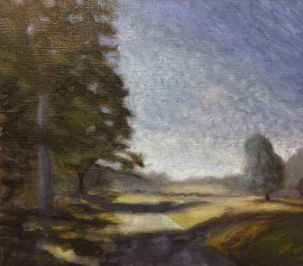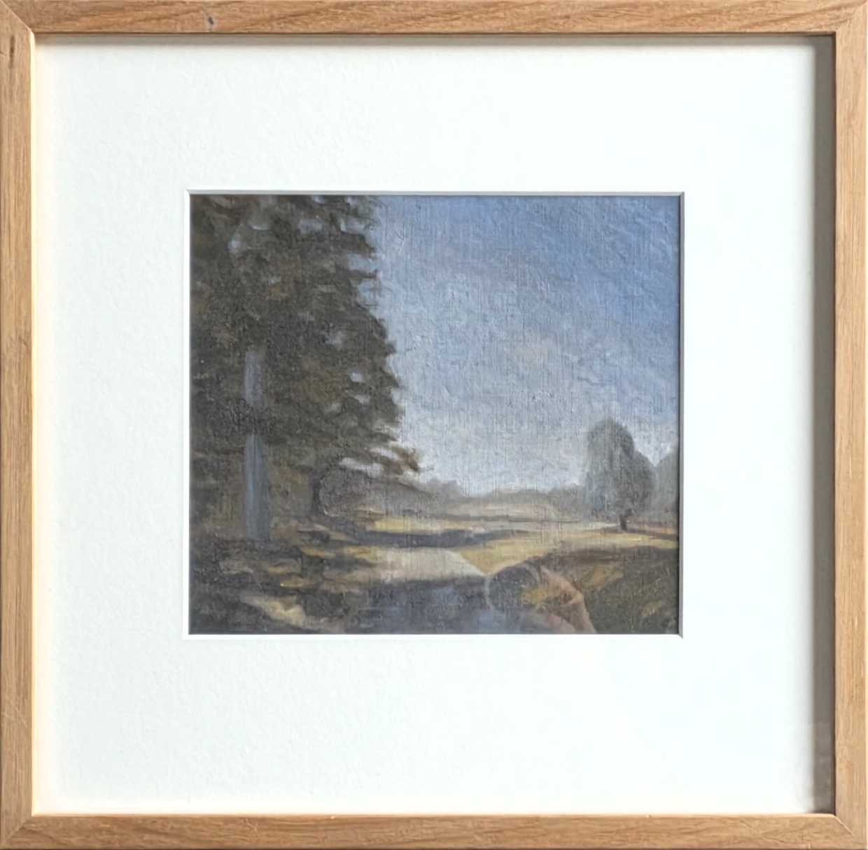 Softly atmospheric and quietly contemplative, ‘Landscape after Cézanne’ (2018) is an intimate study in light, memory and place. Jeremy Drake draws inspiration from the great Post-Impressionist master, reinterpreting Cézanne’s signature landscape language muted tones, diffused light and fluid brushwork— trees dissolve into sky and water reflects a moment suspended in time.