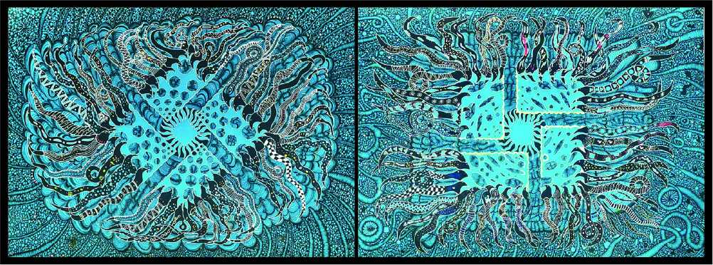 This is a tribute to the villagers. All of them. It’s always about so much more than the patient. So much more than the pain. This diptych, or two-panel work, unifies body and mind and is an extraordinary feat of patience and precision