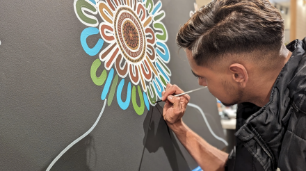 For Warren, this work carries deep personal significance. Created in honour of his late Nana—who first taught him about Aboriginal art and inspired his creative journey—’Bush Medicine’ becomes both tribute and continuation. Through this donation, Warren honours her legacy while supporting families impacted by cancer.