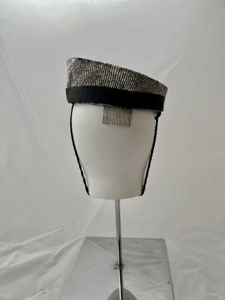A deconstructed truckers cap that screams luxury with gold and lace. Finished with a comb and elastic to secure into your hair however you wish to wear this.
