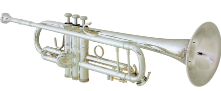 B&S CHALLENGER I Trumpet in Bb, 3 monel piston valves, bore ML Ø.45", bell Ø4.78" #37, yellow brass body, gold brass lead pipe and main tuning slide bow, Silver plated, incl. rucksack light case