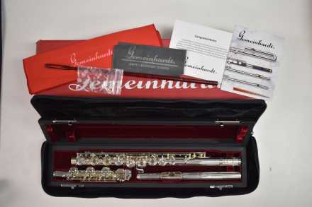 The Gemeinhardt 33SHB professional flute is hand assembled and finished by experienced artisans dedicated to creating instruments of incomparable quality and enduring beauty. Featuring a sterling silver C1 Galway Crusader headjoint, silver-plated body and keys, B footjoint, and French (open hole) keys, it also comes equipped with pointed key arms, Pisoni Lucien deluxe professional pads, and offset G. The 33OSHB comes complete with case and fleece lined fabric cover. All C flute headjoints are made by Gemeinhardt in Elkhart, Indiana, USA.