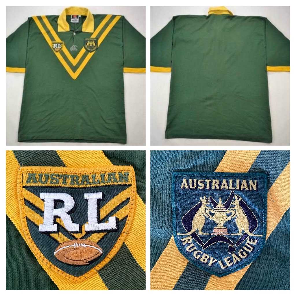 Old-school Australian Kangaroos jersey by Canterbury in good condition. Colours are still good, the logos and detailing present well and the stitching is intact throughout. The fabric has held its shape with light wear consistent with age. A great vintage piece for any Kangaroos or league collector.