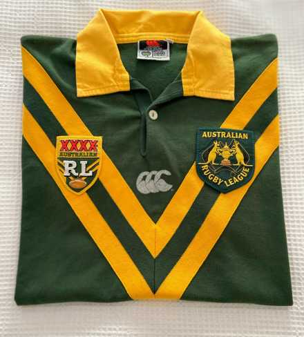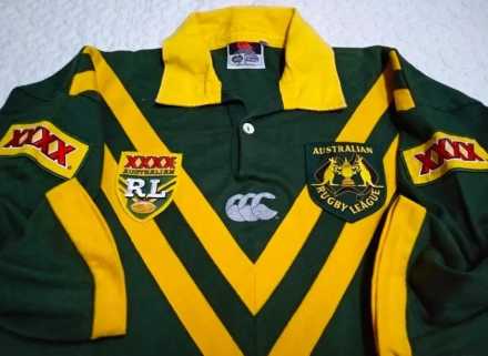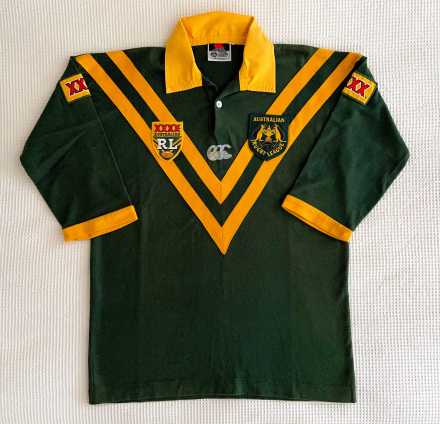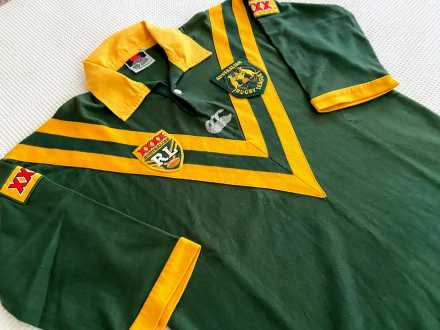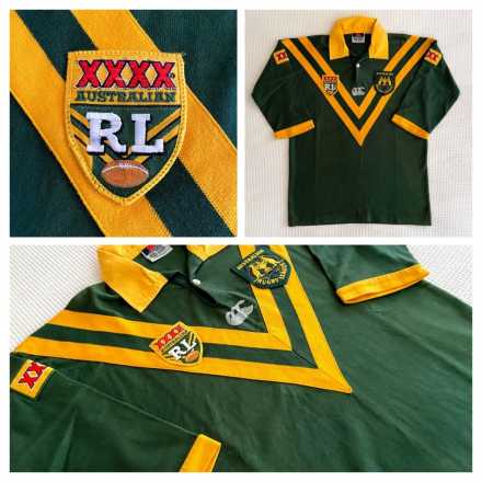 Old-school Australian rugby jersey by Canterbury featuring XXXX badging, in excellent condition. Colours are still strong, the logos and detailing present well and the stitching is intact throughout. The fabric has held its shape with only minimal signs of wear.