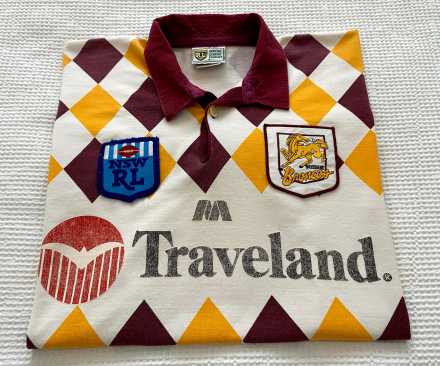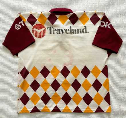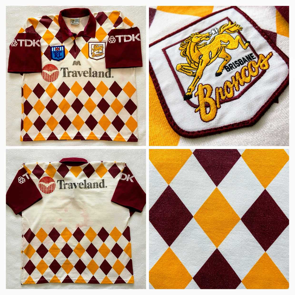 This Broncos Jester jersey is in good condition overall. The fabric has held its shape well and the colours still present nicely. The Traveland sponsor print has faded, which is common for jerseys from this era, but the stitching and panels remain intact. Please refer to the photos for a clear view of the condition.