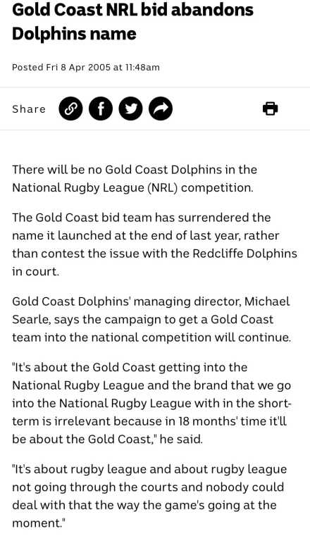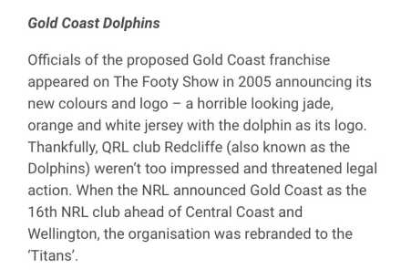 This is a rare piece from the short-lived Gold Coast Dolphins bid in 2005. The proposed franchise unveiled this jade, orange and white design on The Footy Show as part of its launch. The colours and dolphin logo caused plenty of debate at the time, and Redcliffe Dolphins even threatened legal action over the branding. When the NRL licence was eventually awarded to the Gold Coast, the club was rebranded as the Titans, which makes this jersey an unusual collector’s item from a bid that never made it to the field.