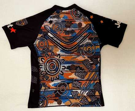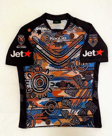 This is an original Indigenous All Stars inaugural jersey, not a later reissue. It’s in good condition, with strong colours, clean prints and solid stitching throughout. The fabric has held its shape well, with only light signs of wear consistent with age. Please see the photos for a clear view of the overall quality.