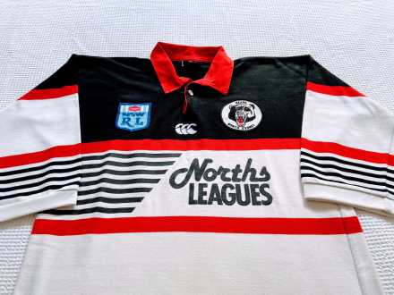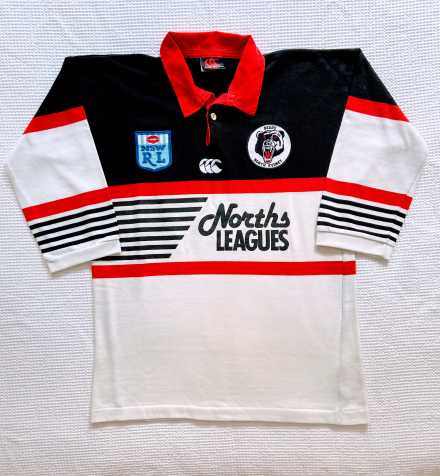 Original North Sydney Bears supporter jersey featuring the Norths Leagues sponsor. The colours remain bright, the fabric sits well, and all detailing presents cleanly.