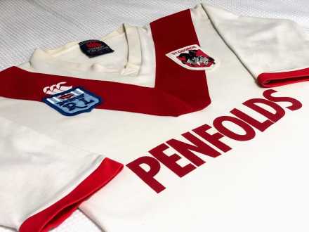 Original St George Dragons supporter jersey featuring the classic Penfolds sponsor. The colours are strong, the fabric holds its shape well, and all logos and detailing present cleanly.