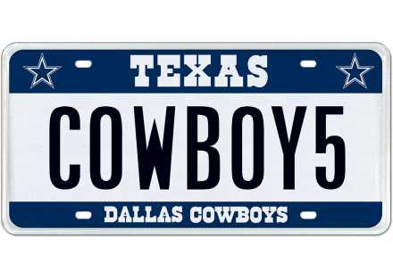 This fan-tastic spelling of COWBOY5 is clear as the star on the helmet, and adds a nod to the 5 World Championships the boys have won with its last character. If you are a fan of America's Team, then owning COWBOY5 is an absolute must, and will look awesome on the My Plates Dallas Cowboys Star plate! The winner of COWBOY5 gets to pick from 30+ eligible My Plates Select background designs and will have first right of renewal at then everyday pricing at expiration of the initial 5-year term.