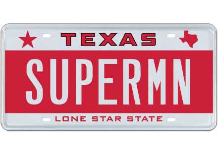 With there having been now 7 major movies featuring the Man of Steel, plus dozens of shows and cartoons, there are plenty of reasons why you would want SUPERMN to ride shotgun with you on the roads of Texas. The latest film released this year, giving Clark Kent yet another cameo as the greatest of super heroes. You don't need to leap a building in a single bound to win this great auction plate, just get the highest bid. The winner of SUPERMN gets to pick from 30+ eligible My Plates Select background designs and will have first right of renewal at then everyday pricing at expiration of the initial 5-year term.