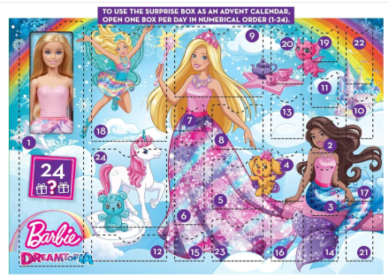 Barbie Dreamtopia Mermaid Advent Calendar - Value $70