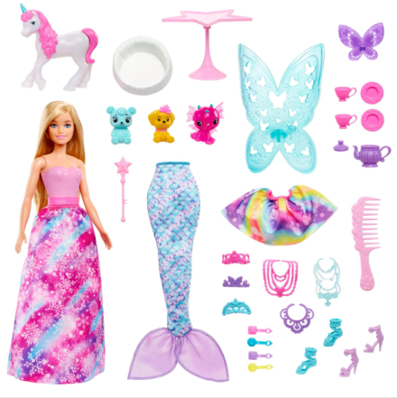 Barbie Dreamtopia Advent Calendar, Fantasy-Themed with 24 Surprises, Daily Toys Include Barbie Fashion Doll, Pets, Clothes & Accessories Like Mermaid Tail & Wings. Open one day at a time or all at once!