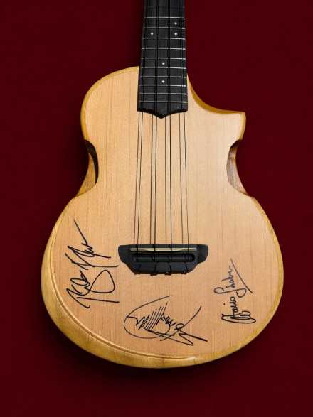 From Béla Fleck’s genre-defying banjo mastery, to Edmar Castañeda’s electrifying harp work, to Antonio Sánchez’s world-renowned rhythmic brilliance, this trio pushes the boundaries of what instrumental music can be. Their collaboration is as unique as the signatures captured on this ukulele.