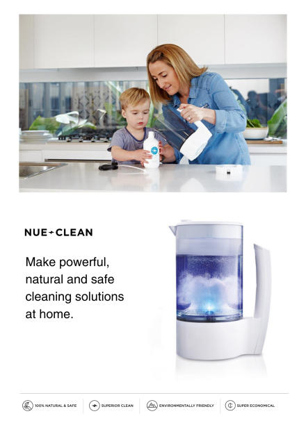 Tired of harsh chemicals, endless plastic waste, and the high cost of cleaning supplies? Nue Clean revolutionises home hygiene with the D1500 unit! This innovative system empowers you to create advanced cleaning products on demand using only tap water, salt, and electricity.