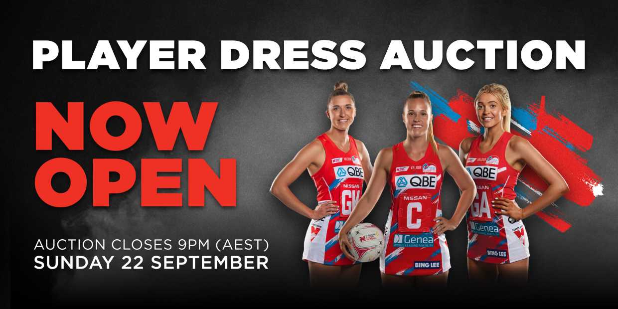Thanks for your interest in the NSW Swifts Player Dress Auction. This auction will be online soon!