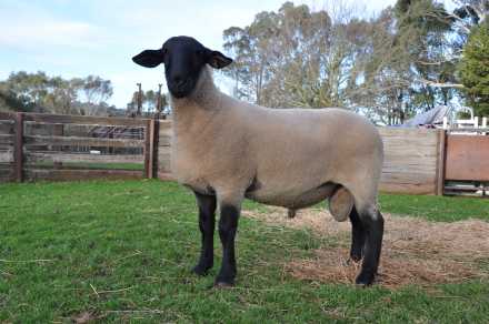 2025 Reserve Champion Suffolk Ram at the Victorian Sheep Show. Terrific Suffolk character and a calm nature to match. Upstanding and level ram. Raised a twin.