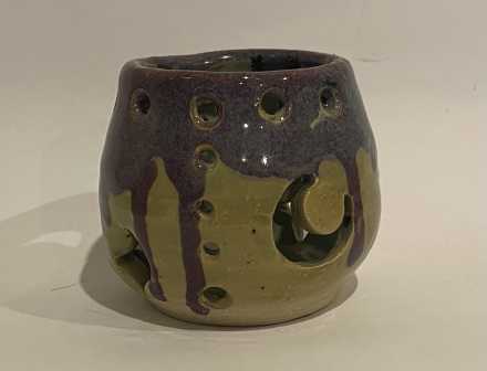 Ceramic candle/tea light holder with coloured glazes, 9 cm (d) x 8cm (h)