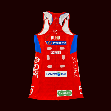 Celebrate one of the league’s best defenders with this official 2025 NSW Swifts match kit dress featuring the name of Sarah Klau.