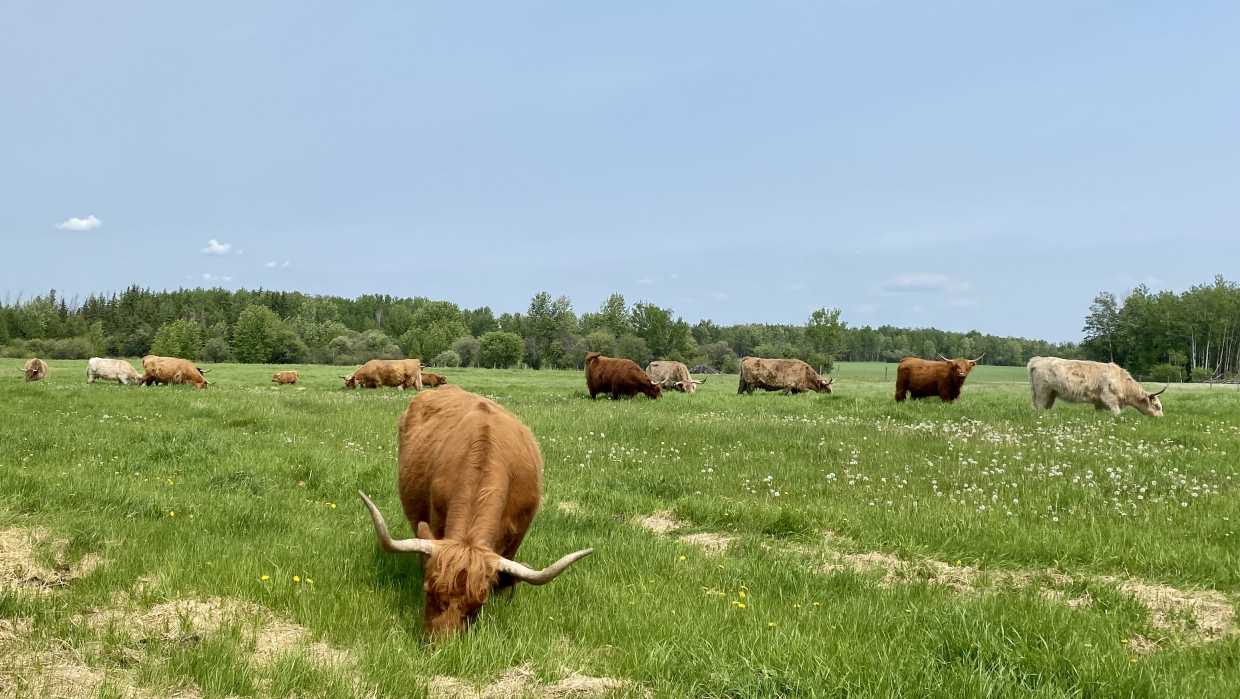 Animals listed in the categories 'Bred Cow' or 'Bred Heifer' will be pasture exposed to the registered highland bull, STR Rioghail Ruadh ET, beginning June 5, 2025 with a planned date to pull the bull of around the end of August 2025. This means calving may start around March 14, 2026. Pregnancy is not guaranteed.