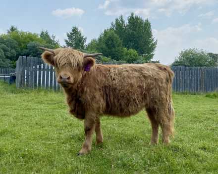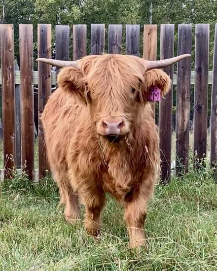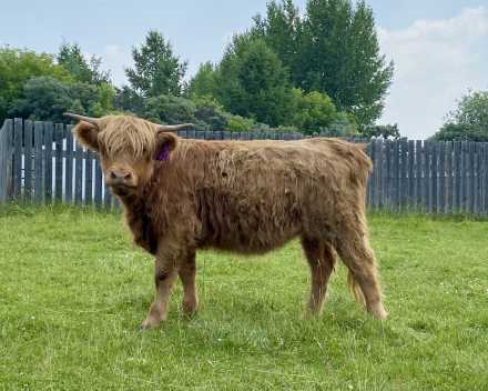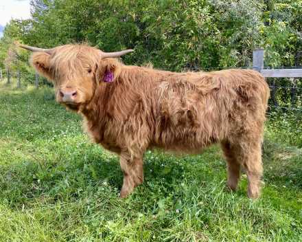 Marigold is curious and smart just like her dam. She has a beautiful hair coat thanks to her sire and we expect she will grow up to be a gorgeous highland. Marigold will be old enough to breed in 2026 and can go to her new home at any point post purchase.