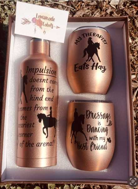 The amazing girls at Three Equestrian Sisters have kindly donated their custom made 3 tumbler drink set. With a value of $85, this drink set will find itself perfectly at home in your tac room or barn.