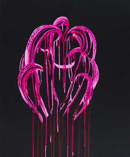 "Dissolving" is an original artwork from the Acid Goth series—Georgie Stokol’s striking debut collection. This bold body of work features vibrant acrylic paintings, each created using only three colours to emphasise the stark contrast between neon pink ink and matte black. Drawing inspiration from Melbourne’s street art, nightlife, metal music, and the rawness of nature, Acid Goth explores themes of impermanence and transformation through the lenses of death, decay, and the unknown.