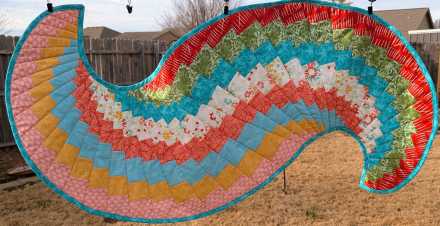 Bright, playful, and full of movement, this fun and swirly table runner is a true mood-booster for your table. Lively shades of turquoise, coral, and fresh green dance across the surface in a flowing design that feels energetic and modern. The curving pieced lines create a sense of motion, drawing the eye from end to end and adding instant personality to any space.