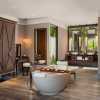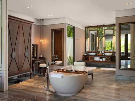 Elegant villas feature terraces and private pools with ocean or garden views. They also come with TVs, Wi-Fi, and luxe bathrooms that have freestanding tubs and separate showers. Butler service is available 24/7.