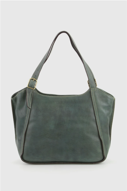 Evity Maya Leather Bucket Tote and Wallet in Forest Green