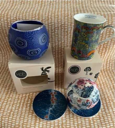 2 x Koh Fine Bone China Mugs – Sacred Country by Epenarra Pammy Foster