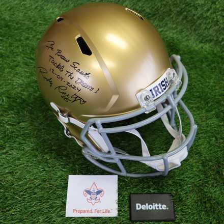 Thank you for supporting our Scout sport memorabilia auction in conjunction with our annual Scout character luncheon showcase with Keynote Rudy Ruettiger. Any credit card holder can bid now though midnight December 6, 2024 on collectible items signed by coaches, players and athletes! Some items require adults over age 21, for example the Tom Osborne signed Mark One .22 Rifle. All proceeds benefit local Scouts in the Mid-America Council serving 102 counties in Iowa and Nebraska. Final item/package winners to connect with jen.hall@scouting.org to make payment and receive goods. Qs: 402-514-3020
