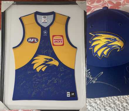 FRAMED 2025 WEST COAST EAGLES signed jumper, including 2023 #1 Draft Pick, Harley Reid