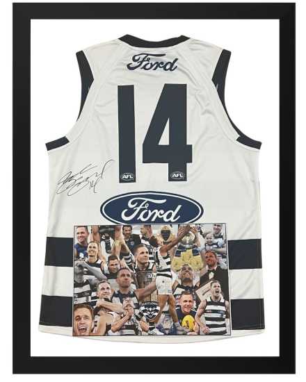 FRAMED Geelong #14 jumper signed by the incomparable Joel Selwood. This is a must have for any collector, let alone Geelong supporters. With a list of achievements most players can only dream of, Joel Selwood will arguably go down as Geelong's Greatest Cat.