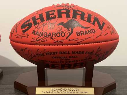 SIGNED 2024 RICHMOND FOOTBALL CLUB FOOTBALL - signed by the 2024 playing squad, which included Richmond "superstar", Dustin Martin.