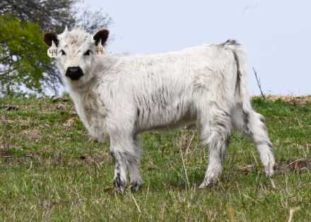 Mopsy is a white polled Highway heifer with a wide, compact build. Out of a White Galloway cow and sired by WCC Pretty Boy, she’s got the look and the depth to be a future cornerstone in your pasture.