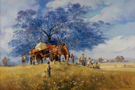 Doyle has a deep affinity with the Australian bush and his work focuses on horses, sheep, drovers, and other farm activities as well as children's games and sport. Influenced by Norman Rockwell,[7] the well-known American illustrator, d'Arcy Doyle gives us a nostalgic impression of post-war Brisbane and Ipswich as he recalls it.