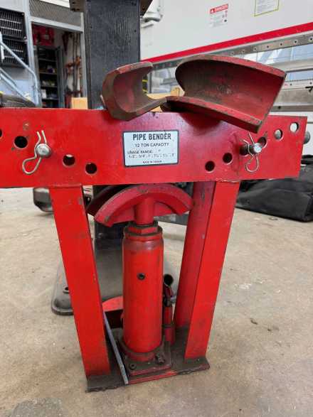 Pipe bender with manual hydraulic pump, and some dies. Sold as is. Any questions email jcraig@ssvotech.org Ref# 53589246