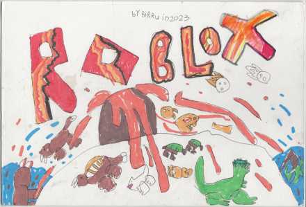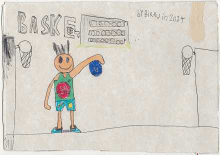 #084 Birru, age 7, Roblox, 2023, and Steph Curry, 2024 (two works)