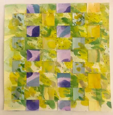 Watercolour on paper strips, woven together, 21 x 21 cm, unframed. Imogen is a communication specialist who advocates and advises on climate change and sustainability, and mum to Annika, Ryan, and Suzanna at BNWPS.