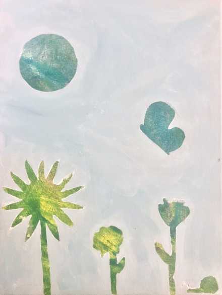 #030 Josephine H., Stencil painting (sun, flowers, insects), 2024