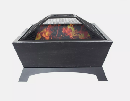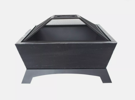 Steel outdoor fire-pit with mesh screen to keep embers contained, and poker. 66 x 66 x 44 cm. Brand new, still in box.