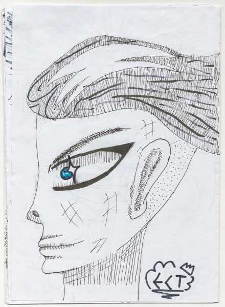Pen and ink on paper, 6 drawings, each 21 x 14.5 cm, unframed, plus matching hand-made manga puzzle.
