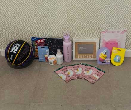 NBA basketball, lollies, face masks, drink bottle, notebook, frame, bath fizzers, planner and more!