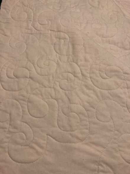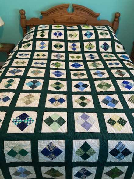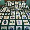 Beautiful quilt handmade by Connie MacEachen. Measures 98" x 68". Fits queen size bed. Green borders, with white backing. Machine stitched. Must be seen to appreciate the beauty of this item.